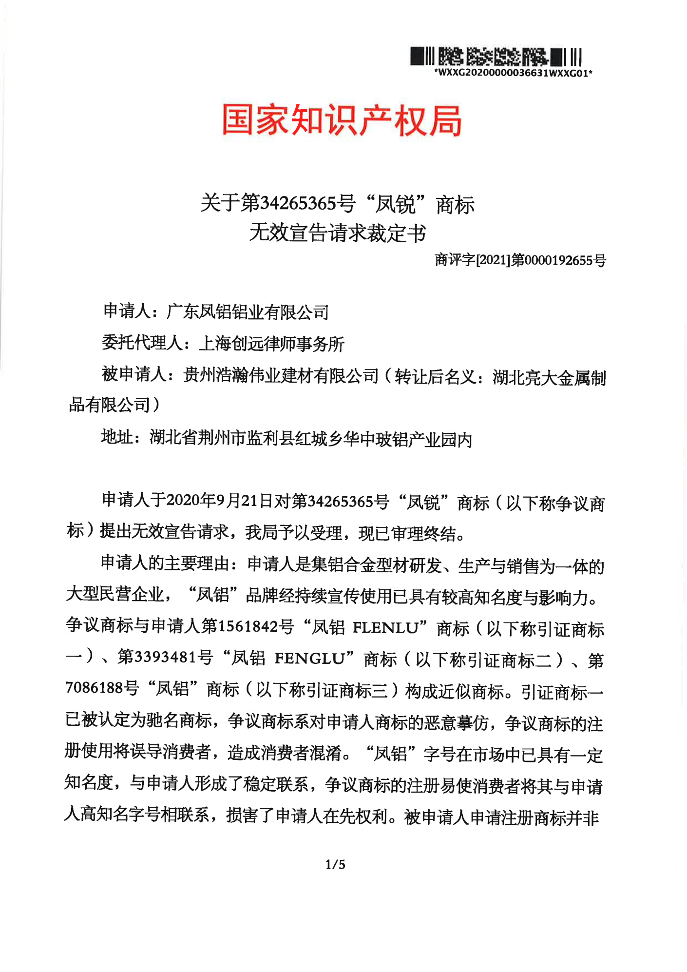 白银辉知队 | 国家知识产权局:“凤锐”商标无效