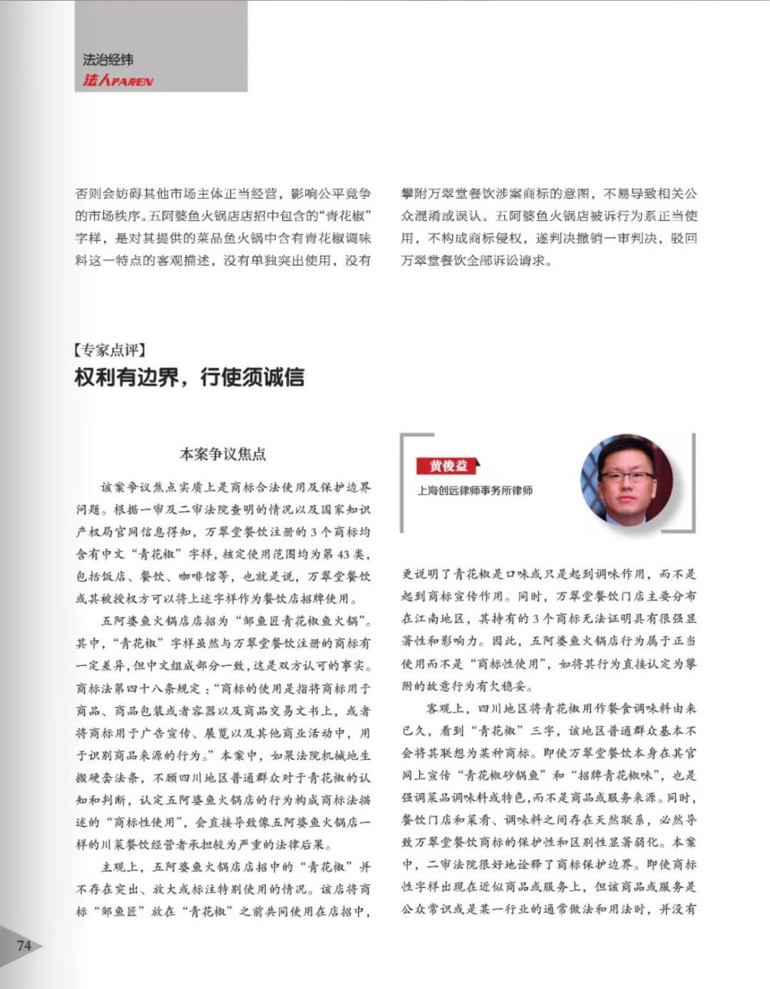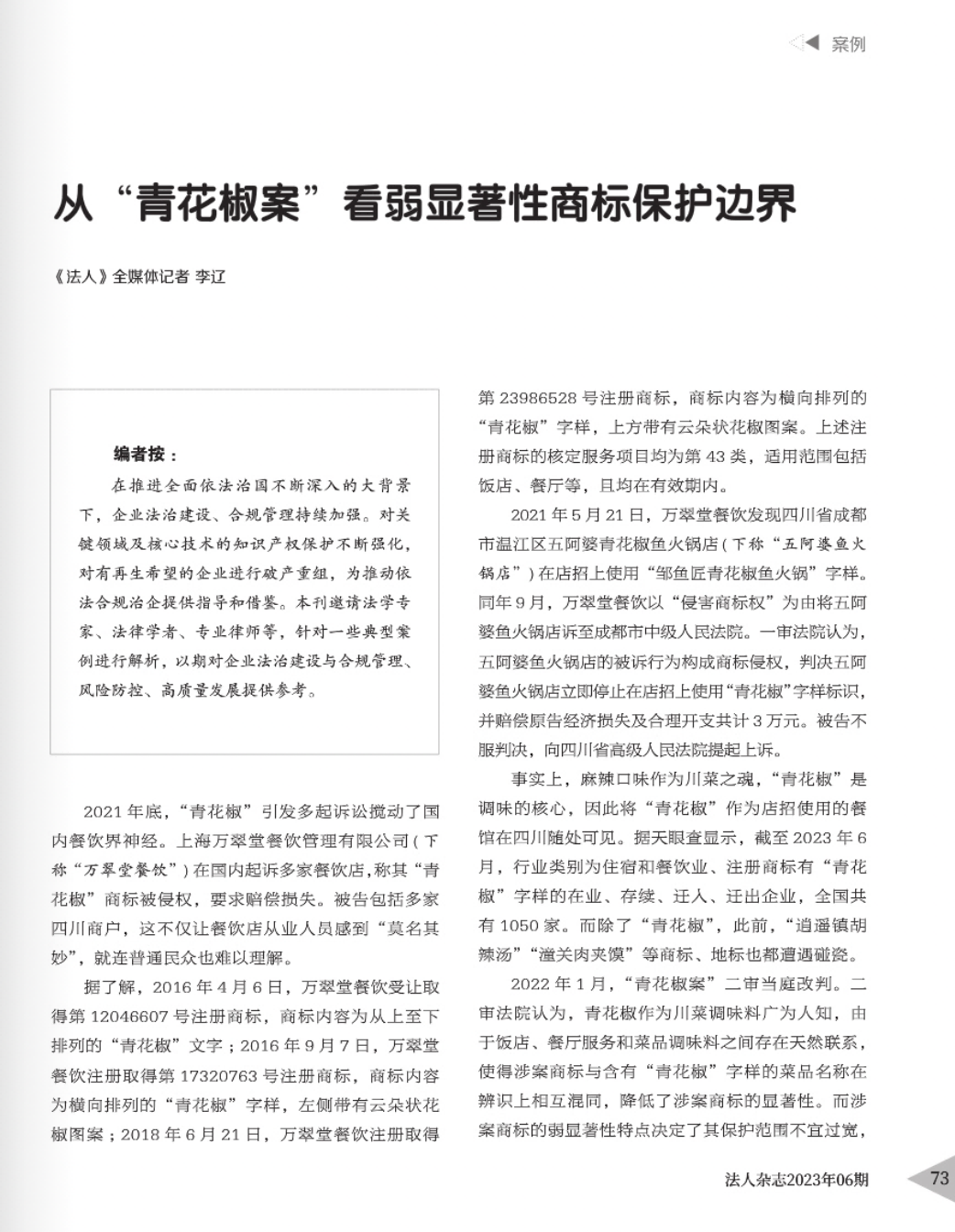 白银辉知简讯 | 辉知队黄俊益律师应“法治日报”旗下杂志邀请,就“青花椒”案发表专家点评